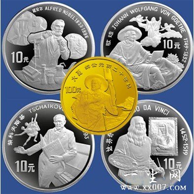 1992年发行世界文化名人金银币(第3组)一套。该套金银币共有1金4银6枚金银币,均为中华人民共和国法定货币。1/3盎司圆形金币(大禹)正面图案: 国徽 背面图案:大禹,并刊“大禹 约公元前二十世纪”。精制币;面额100元,直径23mm,发行量为10000枚。