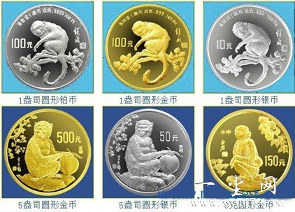 1盎司圆形铂金币正面图案:国徽,并刊国号、年号 背面图案:刘继卣所绘《猴图。精制币; 面额100元,外接圆直径32mm,发行量为300枚。
