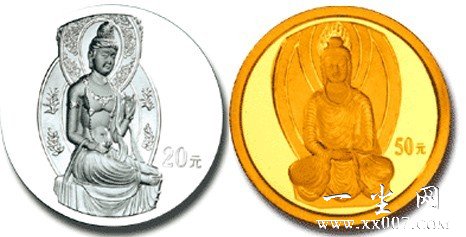 /10盎司金币:莫高窟初期彩塑多与禅定观像联系,造型古朴、浑厚、庄重、含蓄,体现“执心恬静”的内向肃穆。该作品面部沉静、端庄,眉目口角之处流露出一种神秘莫测的微笑,著名敦煌学专家常书鸿将其喻为“中国的蒙娜丽莎”。为敦煌早期彩塑最著名的作品。 2盎司银币:盛唐菩萨像和面额。该图出自敦煌莫高窟第328窟壁画。画中菩萨一腿下垂作“游戏坐”式,这种随意安坐、活泼舒坦的像式,显然是世俗化的一种表现。肌肤丰润,体态自然,裙饰华丽,胸前的璎珞、臂戴的金钏细琢精致,使造型呈现出一种和谐、淡雅的美感。