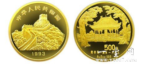1993年发行的中国名胜纪念币共计11枚,其中金币6枚,银币5枚,均为法定货币。金币之中有一枚规格为5盎司,图案是黄帝陵的金纪念币。