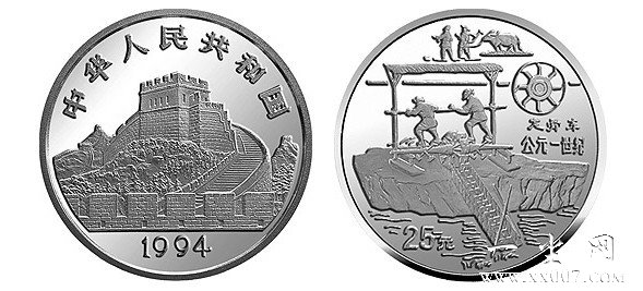 年我国发行了古代科技发明发现第3组纪念币,其中有一枚铂币,其背面图案是“龙骨车”。翻车,是一种刮板式连续提水机械,又名龙骨水车,是我国古代最著名的农业灌溉机械之一。《后汉书》记有毕岚作翻车,三国马钧加以完善。翻车可用手摇、脚踏、牛转、水转或风转驱动。龙骨叶板用作链条,卧于矩形长槽中,车身斜置河边或池塘边。下链轮和车身一部分没入水中。驱动链轮,叶板就沿槽刮水上升,到长槽上端将水送出。如此连续循环,把水输送到需要之处,可连续取水,功效大大提高,操作搬运方便,还可及时转移取水点,即可灌溉,亦可排涝。我国古代链传动的最早应用就是在翻车上,是农业灌溉机械的一项重大改进。