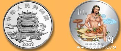2、1盎司彩色纪念银币背面图案为神农尝百草并刊面额。