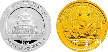 2012年10月18日发行华夏银行成立20周年熊猫加字金银纪念币一套。该套纪念币共2枚,其中金币1枚,银币1枚,均为中华人民共和国法定货币。 一、纪念币图案
