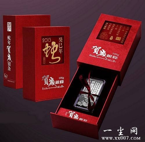 为庆贺2013癸巳(蛇)年新春佳节,中国金币总公司限量发行蛇年贺岁银条,该银条是继2008戊子(鼠)年银条后的第六组产品,由深圳国宝造币有限公司铸造,上海金币投资有限公司总经销。