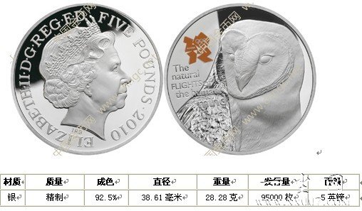 年6月起,英国皇家造币厂推出2012年伦敦奥运会官方特许商品——主题为“欢庆英国”的纪念银币项目。该项目共包含18枚银币,分为3大系列,主题分别为“英国记忆”、“英国风情”和“英国精神”。英国的气候温和潮湿,在此繁衍生息的野生动物种群庞大。然而,目前越来越多的动物受到威胁或濒临灭绝,尤其是在森林植被发生变化的区域,而气候变化带来的影响也不容忽视。