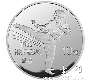 为了纪念这一盛会我国过于1995年发行了第26届奥运会金银纪念币,其中金币2枚,银币6枚,均为法定货币。其中有1枚重量为27g的银币,其正面图案为国徽并刊年号,背面图案为跆拳道。