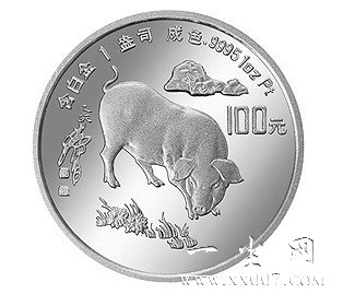 12种源于自然界的动物组成,1995年我国发行了以生肖猪为题材的纪念币,该套币共10枚,其中金币5枚,银币4枚均,铂币1枚,均为法定货币。在这10枚纪念币中有一枚1盎司铂币,其正面图案为,北京雍和宫万福阁,背面图案为黄胄所绘的《猪图》并刊面额。