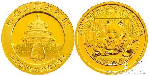 为纪念华夏银行成立20周年,中国人民银行2012年10月18日发行华夏银行成立20周年熊猫加字金银纪念币一套。该套纪念币共2枚,其中金币1枚,银币1枚,均为中华人民共和国法定货币。