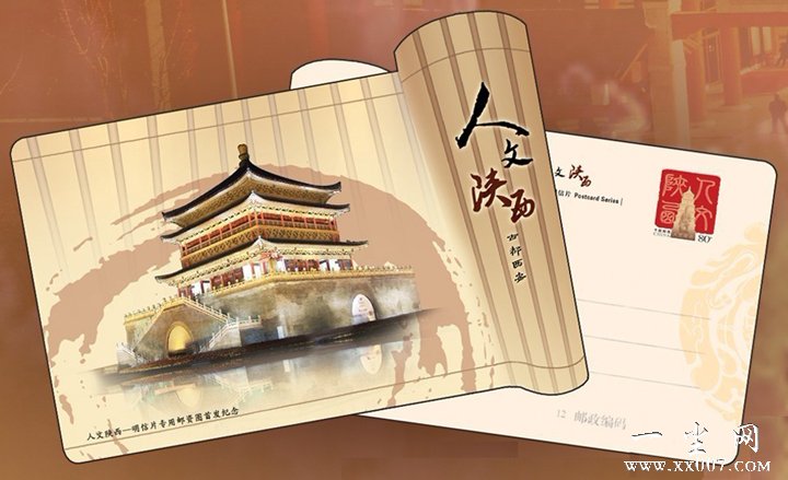 中国邮政将于4月26日发行《人文陕西》普通邮资明信片一枚,主图为大雁塔和兵马俑。