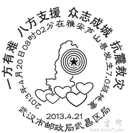 湖北武汉雅安地震邮戳