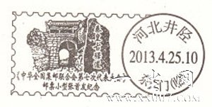 4月25日,中国邮政发行《中华全国集邮联合会第七次代表大会》纪念邮票小型张,小型张背景图案反映的是河北石家庄井陉秦皇古驿道。石家庄市邮票特别于邮票北京原地举行邮票首发式,并刻制了秦皇古驿道风景戳、“东天门”临时连体戳以及两枚首发纪念戳上图。