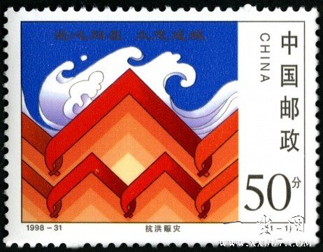 2.国家邮政局于1998年9月1日发行1998-31《抗洪赈灾(附捐邮票)》,面值50分,附捐50分,邮票与附票连印,附捐资费50分印在附票上,邮票发行量3000万,1998年入汛以来,我国长江流域和东北嫩江流域发生了历史上罕见的特大洪涝灾害。全国沿江地区受灾严重,损失巨大。全国各地人民响应党中央、国务院的号召,发扬“一方有难、八方支援”的中华民族传统美德,踊跃捐款捐物,以实际行动支援抗洪救灾第一线。国家邮政局决定增发这套《抗洪赈灾》附捐邮票。