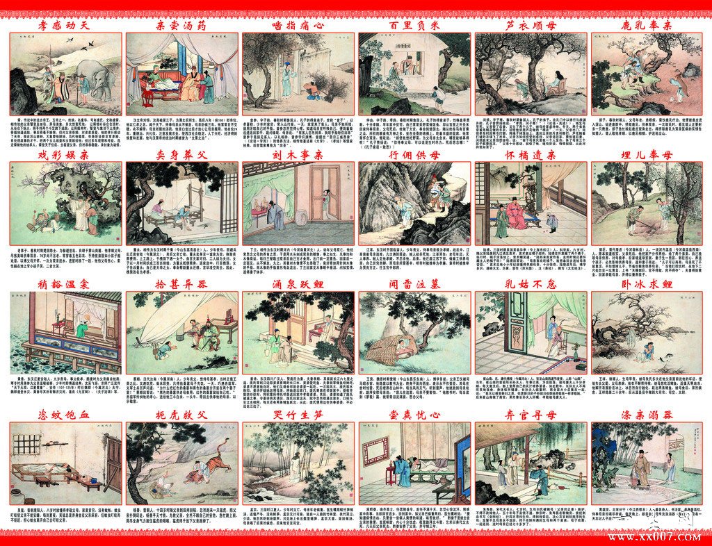 所谓《二十四孝图》是一本讲中国古代二十四个孝子故事的书,配有图画,主要目的是宣扬封建的孝道,各地各种载体的均有。