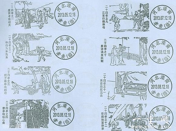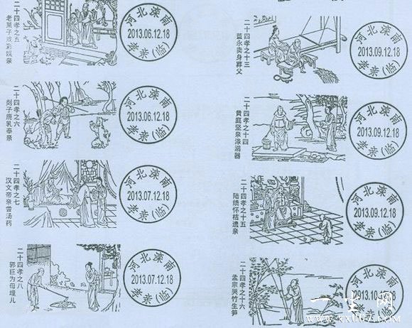 2013年5月开始河北滦南邮局和集邮协会联合发行中华传统故事---二十四孝邮戳和加印片,每月三枚。