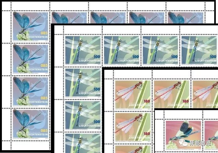2019年3月4日,列支敦士登邮政发行一套4枚《蜻蜓》普通邮票,主题为黄条色蟌(calopteryx virgo)、帝王伟蜓(Anax imperator)、大红蜻蜓(phyrrhosoma nymphula)和华丽色蟌(Calopteryx splendens) 。这套邮票采用摄影师Xaver Roser的作品,这些蜻蜓均是在列支敦士登的汝格拉利特(Ruggeller Riet)自然保护区拍摄的。