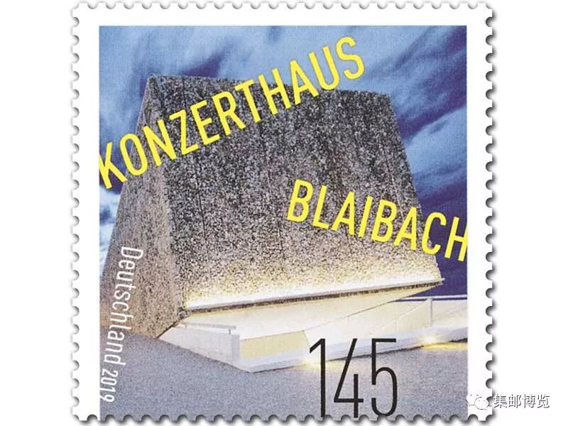 2019年3月1日,德国邮政发行一枚以布莱巴赫市音乐厅为主题的纪念邮票。这座由Peter Haimerl Architektur建筑事务所设计的音乐厅位于德国布莱巴赫市(Bailbach)。音乐厅是一座地下建筑物,面积有500多平米,该项目作为城市改建工程的一部分,旨在复兴布莱巴赫市中心活力。邮票画面上是该音乐厅位于市中心广场的入口处。