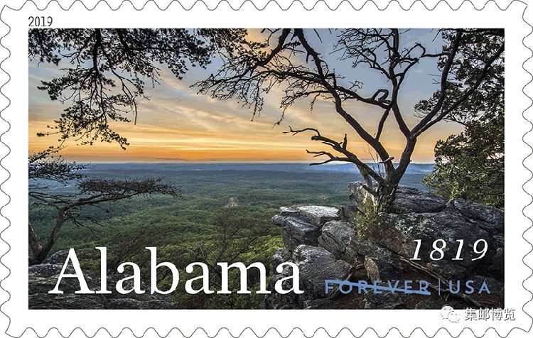 2019年2月23日,美国邮政发行一枚建州系列邮票,庆贺亚拉巴马州建立200周年。亚拉巴马州于1819年12月14日加入联邦成为美国第22州,但在1861年退出联邦,加入南方邦联。1865年废除奴隶制,1867年因为拒绝签署美国宪法第十四修正案而处于军管状态。1868年重新加入联邦。邮票图案为切哈山州立公园。
