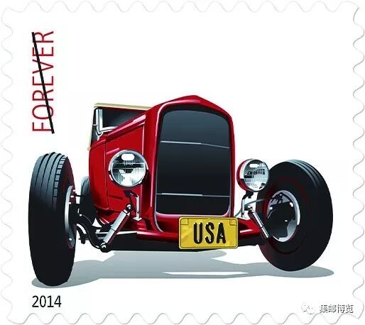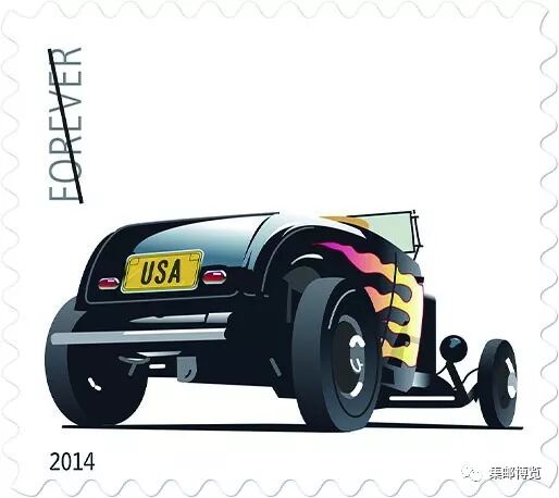 2014年6月6日,美国发行“Hot Rods”永久面值邮票,细心的集邮者发现邮票上竟然未印铭记。邮票上的铭记去哪儿了呢?其实这是设计者在玩捉迷藏,将邮票铭记图案化了,变成了汽车的车牌号,此类设计真是令人叫绝,不留意的话,你还真的以为没有铭记呢!