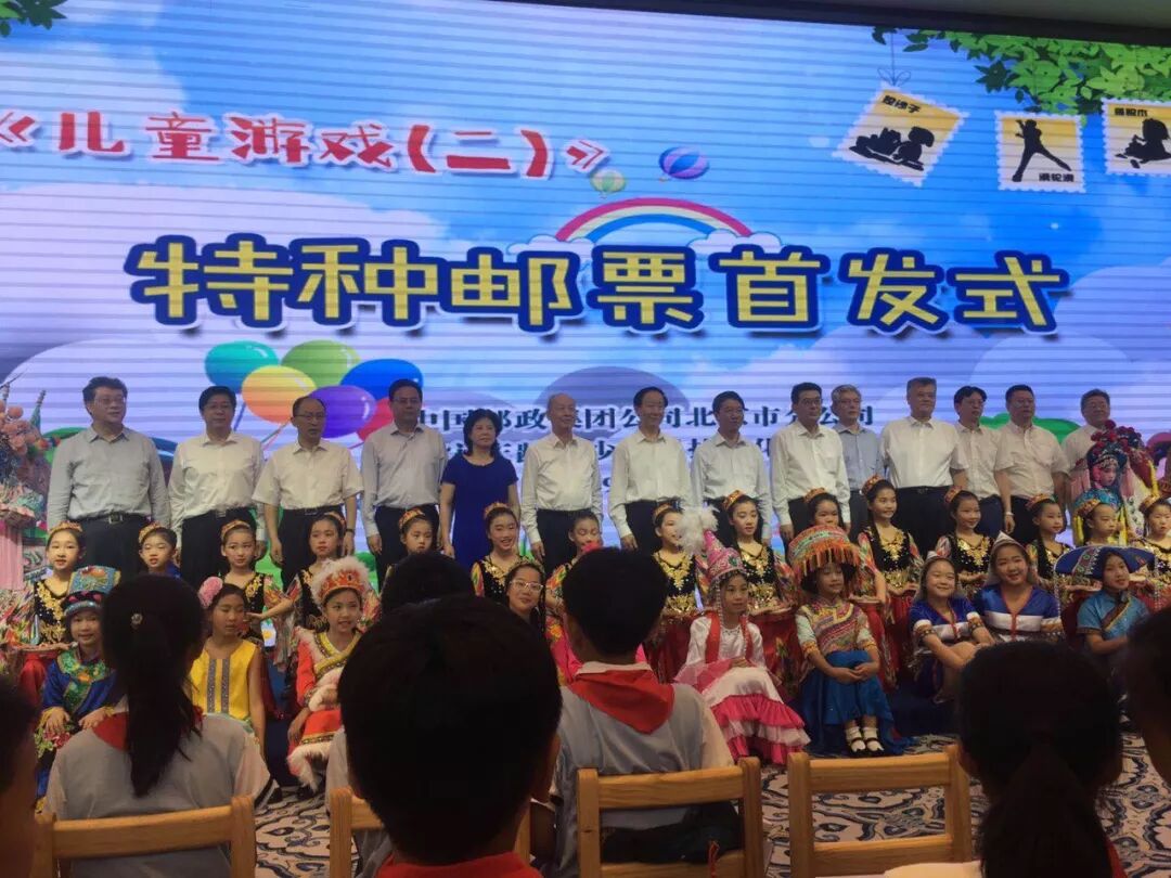 今日上午,由中国宋庆龄青少年科技文化交流中心和中国邮政集团公司北京市分公司联合主办的《儿童游戏(二)》特种邮票首发仪式在京举行。150余位青少年学生代表齐聚中国宋庆龄青少年科技文化交流中心,共同见证《儿童游戏(二)》特种邮票的首次发行。