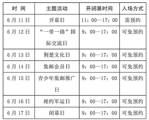 今天 中国2019世界集邮展览将于6月11日至17日在武汉国际博览中心举行,为期一周的世界邮展共设七个主题日,为方便集邮爱好者观展,现将观展时间及方式公告如下: