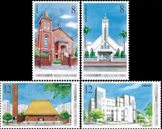 8月7日,发行《台湾教堂邮票(2019年版)》1套4枚,名称及面值分别为:淡水礼拜堂(面值8元),太平境马雅各纪念教会(面值8元) ,基督教怀恩堂(面值12元) ,台南圣教会(面值12元) 。