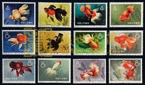 为满足广大群众对于发行彩色邮票的呼声,1959年北京邮票厂建成投产后,邮票发行部门就开始积极进行多色影写套印工艺的试验工作,这套《金鱼》邮票,是我国首次采用四色影写套印工艺,这也是新中国第一套描绘观赏鱼的影写版彩色邮票。邮票于1960年6月1日发行,全套12枚。由孙传哲和刘硕仁设计,北京邮票厂印制,志号是特38。邮票选题新颖,金鱼飘逸自然,色彩艳丽,故而极受欢迎。