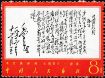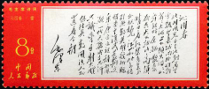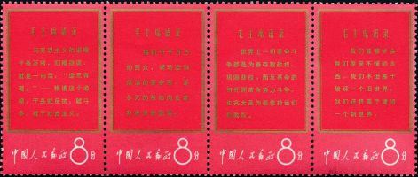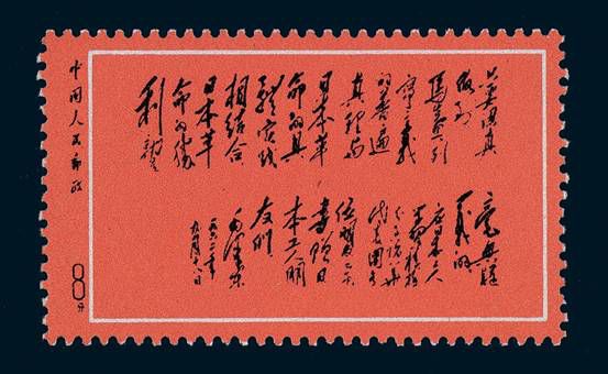 “文化大革命”期间未发行的一套邮票,计划于1968年10月1日发行,全套1枚,面值8分。邮票图案采用1962的9月18日毛泽东为日本工人的题词:“只要认真做到马克思列宁主义的普遍真理与日本革命的具体实践相结合,日本革命的胜利是毫无疑义的。应日本工人学习积极分子访华代表团各位朋友之命书赠日本工人朋友们毛泽东一九六二年九月十八日”。根据1968年9月27日中央宣传工作会议精神,要求今后不准在邮票上印毛泽东像、语录和诗词;已经印刷未发行的邮票停止发行。因此邮电部决定停发这套邮票,邮票有极少量流出,新旧票均为”文革”邮票中的珍罕品。