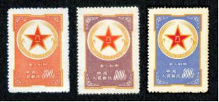 为了优待军人免费寄信,当时的邮电部与解放军通信部商定,由邮电部发行一套“军人贴用”邮票。一套3枚。定于1953年8月24日发行。图案以“八一”军徽为主图,下面印有“军人贴用”等字样。由于这套邮票采用三色套印,技术复杂及当时印厂任务紧张,邮票印制过程较长,分期印制、分批交付。在第一批“军人贴用”邮票下发后,发现使用中存在诸多问题,如邮戳容易暴露部队驻防移防的秘密,使用范围和人员难以控制等,故停止使用,并回收销毁。其中“蓝军邮”印制较晚,未来得及下发使用,故存世量极少,成为新中国邮票中的罕品,极为珍贵。