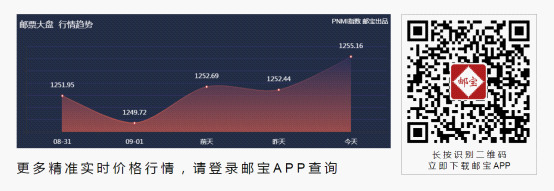 邮市大盘行情指数9月4日上涨,4日最新指数1255.16点,3日指数1252.44点,上涨2.72点,涨幅0.21%。具体邮票品种的价格变化在下文中一一列出。