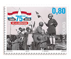 2019年9月17日,卢森堡邮政发行一枚邮票纪念二战解放卢森堡75周年。1944年9月9日,美军在佩唐日进入卢森堡境内,9月10日,德军投降,美军占领卢森堡市。邮票图案选用摄影师Tony Krier当年所拍摄的照片。