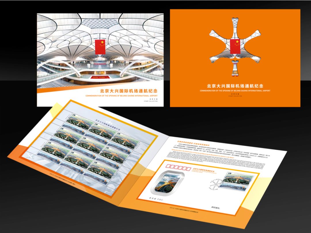 《北京大兴国际机场通航纪念》大版折外配异形镂空插套。