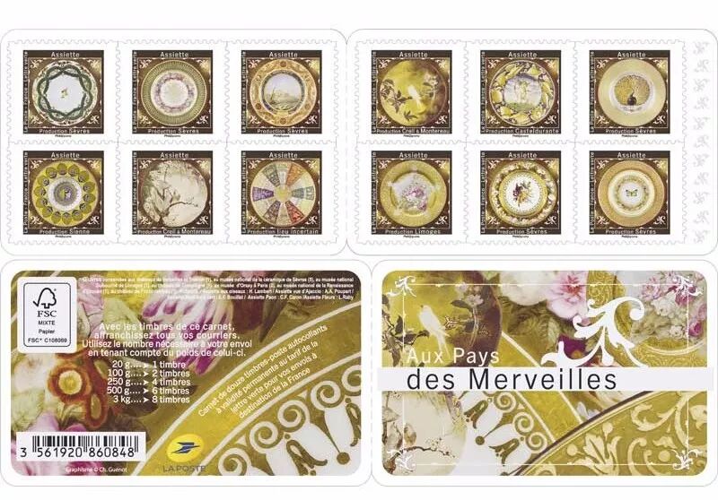 2019年9月16日,法国邮政发行一套包含12枚邮票的《陶瓷名器》小本票,展现利摩日、塞夫勒、蒙特罗的克雷尔、马约利卡、锡耶纳等著名品牌的瓷器。其中,塞夫勒(Sèvres)又被称为法国官窑,以前仅为贵族、皇室、富商巨贾服务。如今这里仍是法国国立名窑,每年产量限制在3000件。