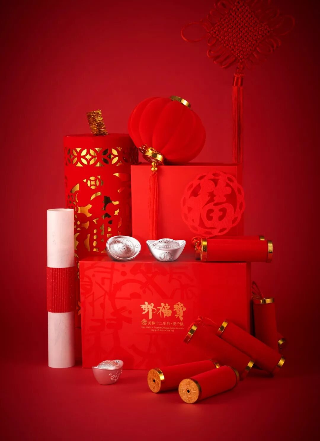 包含:鼠年银元宝1锭、《韩美林十二生肖·庚子鼠》个性化邮票1本、韩美林《庚子大吉》艺术微喷画1幅