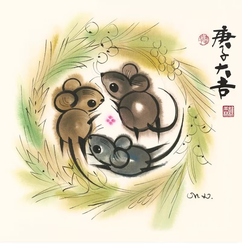 《庚子大吉》由韩美林亲笔创作并题名落款,画面为逗乐萌趣的三只小鼠在田间追逐打闹,一派祥和安乐的气氛,彰显来年生活富足、幸福快乐、大吉大利的美好愿景,《庚子大吉》艺术微喷画采用微喷工艺,画面精致逼真,高度还原原画的美林生肖艺术神韵。