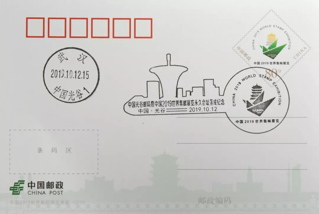 永久会址落成纪念邮戳和“中国光谷邮局”日戳