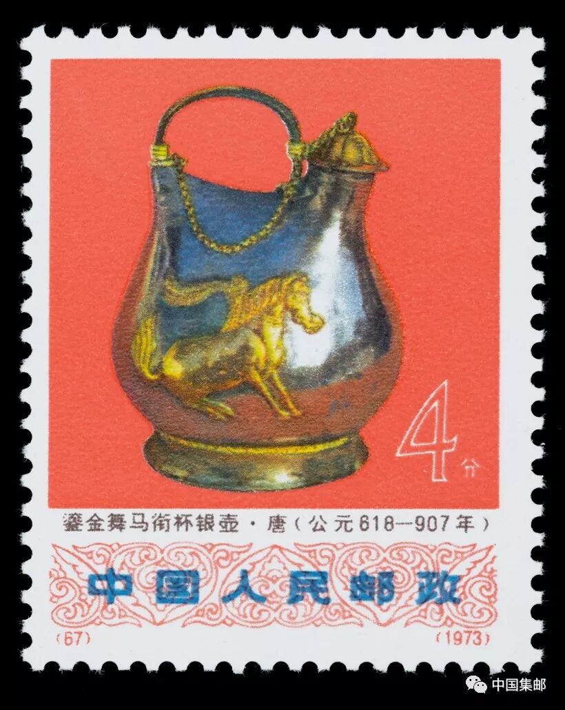 1973年,中国邮政发行了编66-77《文化大革命期间出土文物》,全套共12枚。登上邮票的12件文革期间出土的文物,是这个时期数万件精华历史文物的浓缩精品,其中第二枚变现的内容便是我——鎏金舞马衔杯纹银壶。你们有没有收藏呢?