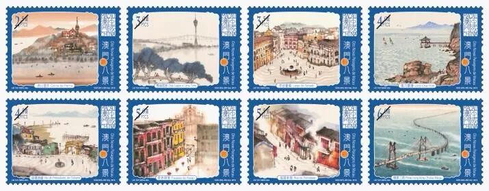 11月22日,发行《澳门新八景 (通用邮票)》1套8枚,名称及面值分别为:西山望洋(2.5圆)、双湖塔影(3圆)、亭前葡风(3.5圆)、龙爪观涛(4圆)、略环鱼韵(4.5圆)、爱巷倾情(5圆)、福隆新貌(5.5圆)、桥牵三地(6圆)。