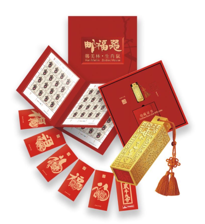 除此之外,《邮福器》韩美林·生肖鼠金印套装内含有《庚子年》大版一套和小版一套,让一套具有特殊意义的珍贵邮票陪伴在长辈和亲友的身旁,纵使岁月再长,回忆也不会走散。