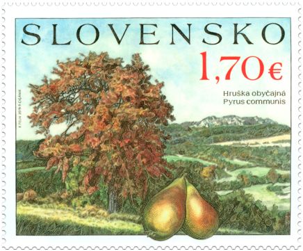 2019年10月11日,斯洛伐克邮政发行一枚自然保护系列邮票,主题为西洋梨,背景为摩拉维亚-斯洛伐克边境的白喀尔巴阡山保护区。该保护区1979年设立,其广阔的草地使白喀尔巴阡山脉跻身于欧洲最重要的草地生态区,并被联合国教科文组织列为生物圈保护区。