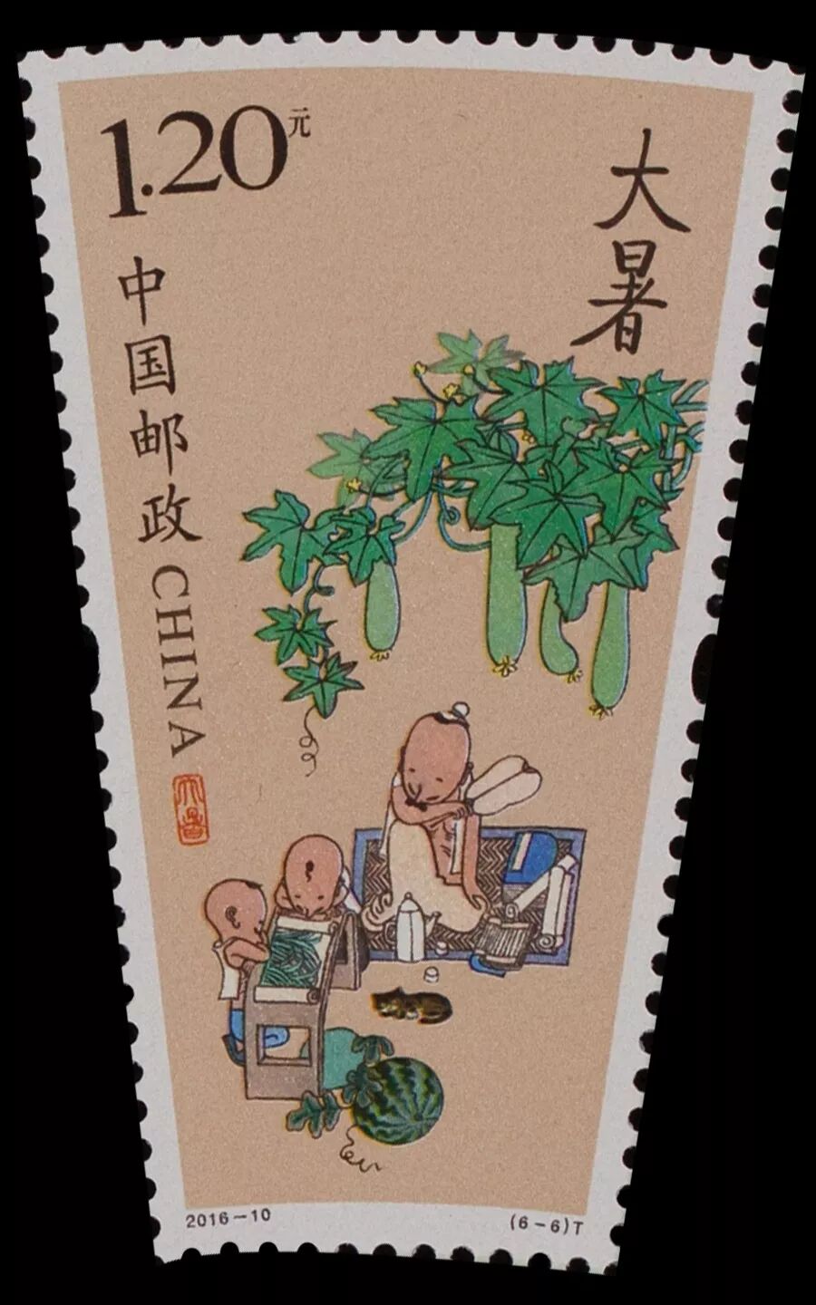 2016年5月5日,中国邮政发行了《二十四节气》特种邮票第二组,邮票1套6枚,图案内容分别为夏季的六个节气。