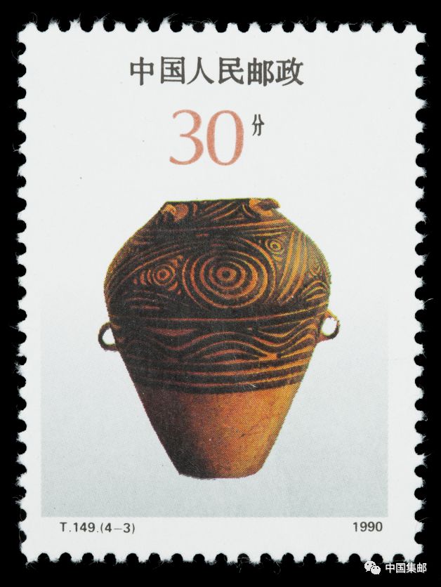我的身上不仅带有这么多的光环,我还作为马家窑文化的代表荣登上了国家名片。1990年,中国邮政发行了T.149《彩陶》特种邮票,全套4枚。其中第三枚所表现的便是内容便是马家窑类型,我的形象从此被定格于方寸之间!