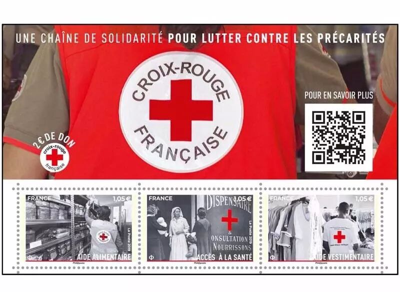 2019年10月21日,法国邮政发行一枚包含3枚邮票的《团结维稳》小全张,主题为法国红十字会在食品救助、医疗救助和衣物救助方面所作的努力。这套邮票总面值3.15欧元,其中两欧元将捐献给法国红十字会。