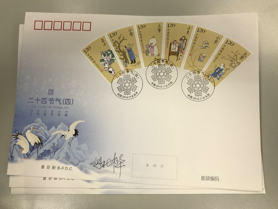 2019年11月8日,《二十四节气(四)》特种邮票首发式在全国农业展览馆举行。此次活动由中国邮政集团公司北京市分公司、全国农业展览馆(中国农业博物馆)共同主办,由中国邮政集团公司北京市集邮与文化传媒部、中国邮政集团公司北京市西城区分公司共同承办。