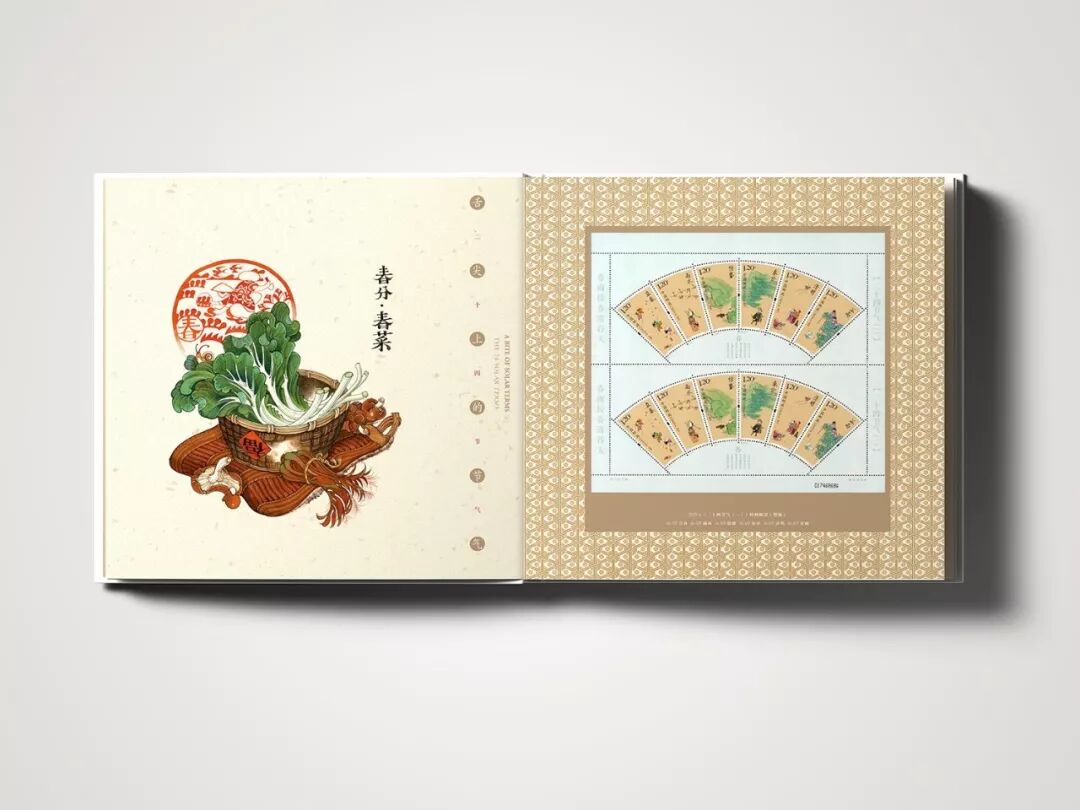 《舌尖上的节气》邮票珍藏册,收录了《二十四节气》全部的系列邮票整版,更有《二十四节气》特殊版式邮票,极具收藏价值。