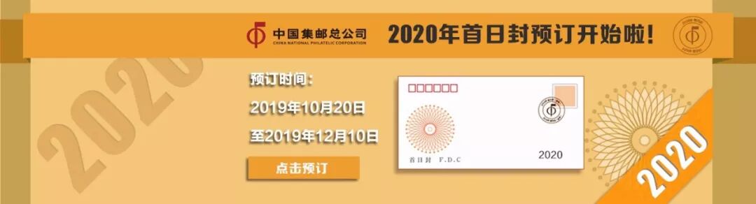 备受瞩目的中国集邮总公司2020年首日实寄封开始预订啦!去年没订到的邮迷朋友,今年可不要再错失良机了哦。预订时间从2019年10月20日至2019年12月10日,具体订购方法与预订金额请往下戳!