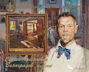 2019年11月29日,俄罗斯邮政为俄罗斯版画家和油画家谢尔盖-阿尔谢尼耶-维奇维诺格拉多夫(1869—1938)诞辰150周年发行一枚小型张。维奇维诺格拉多夫1889年开始在圣彼得堡艺术学院学习,并加入俄罗斯巡回展览画派。1912年,他成为艺术科学院院士。自1916年起,成为艺术科学院正式成员。他在20世纪初期的作品中多了些印象派风格特点,风景画创作主要以写生为主,他的作品对光线的处理非常迷人。