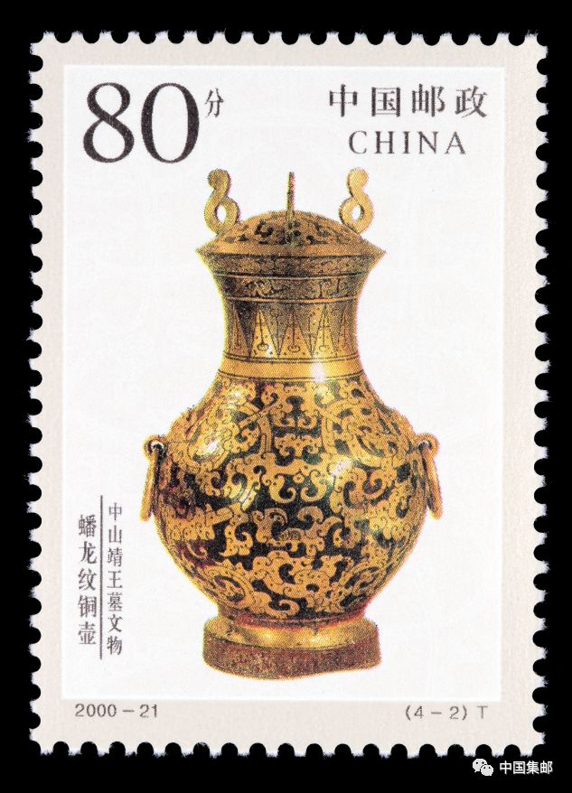 2000年10月20日,中国邮政发行了《中山靖王墓文物》特种邮票,全套邮票4枚,其中一枚便是我——蟠龙纹铜壶。