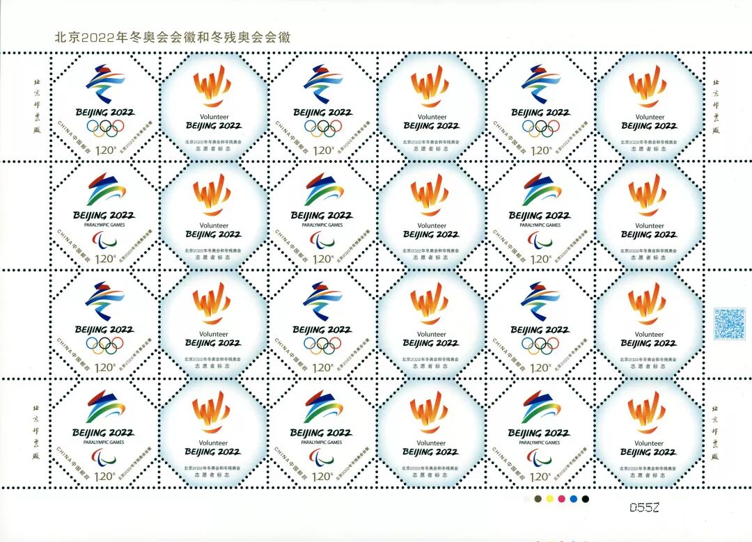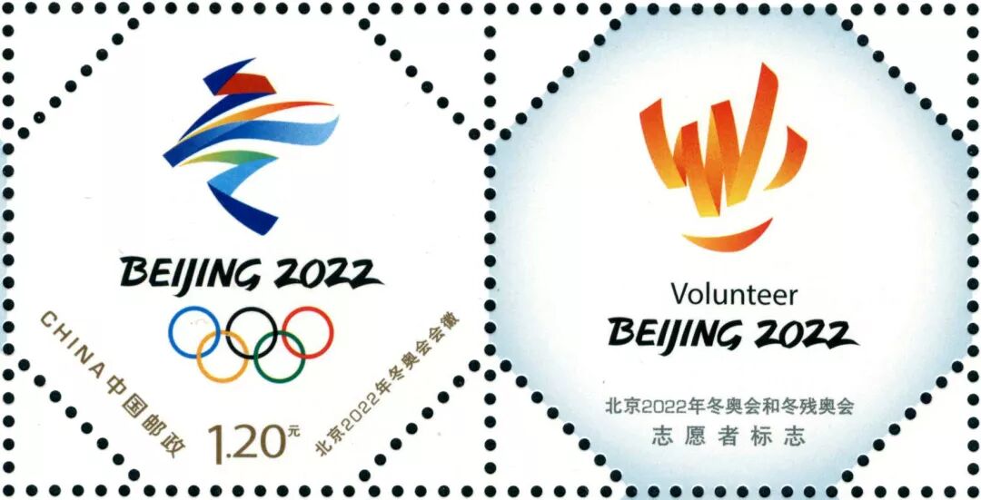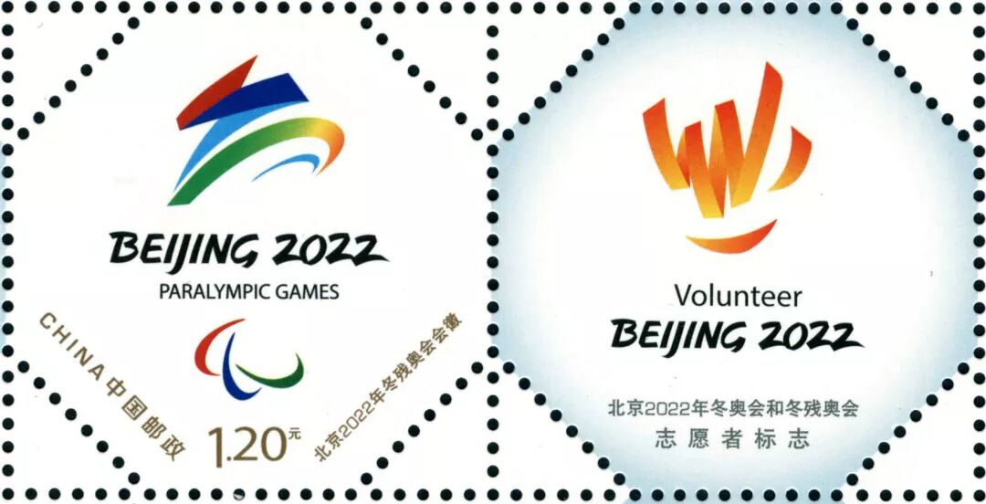 该邮票1套2枚,两枚主图分别表现了北京2022年冬奥会会徽和冬残奥会会徽,附图表现了北京冬奥组委12月5日刚刚发布的北京2022年冬奥会和冬残奥会志愿者标志。