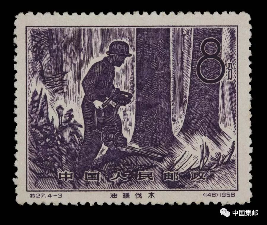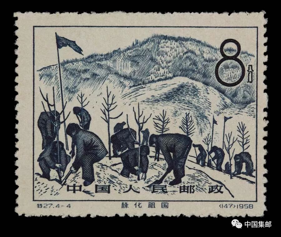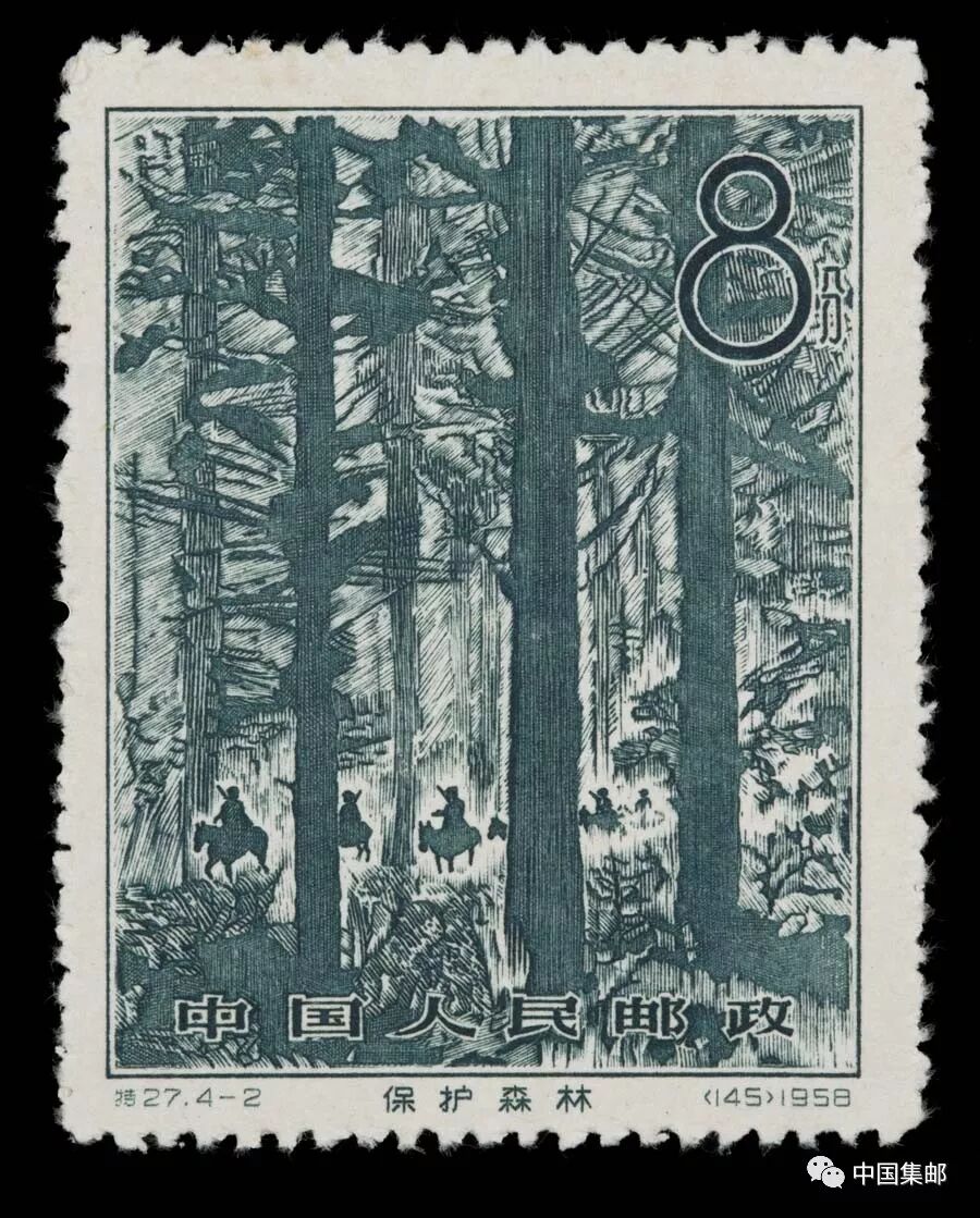 “特27 林业建设”特种邮票发行于1958年,全套4枚,图案均由艺术大师黄永玉以木刻版画创作,将木版画与雕刻版邮票相结合,在当时是一次新的尝试。