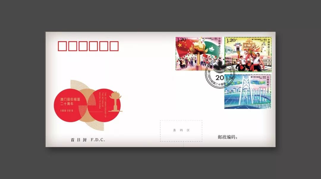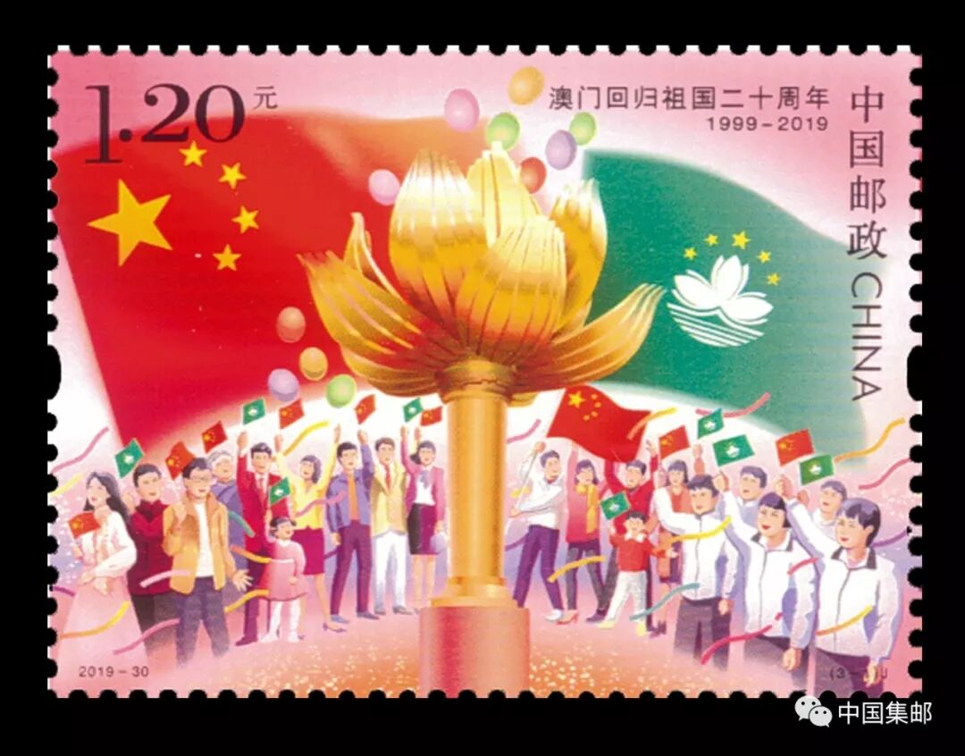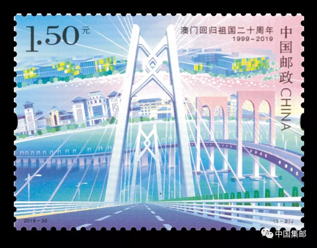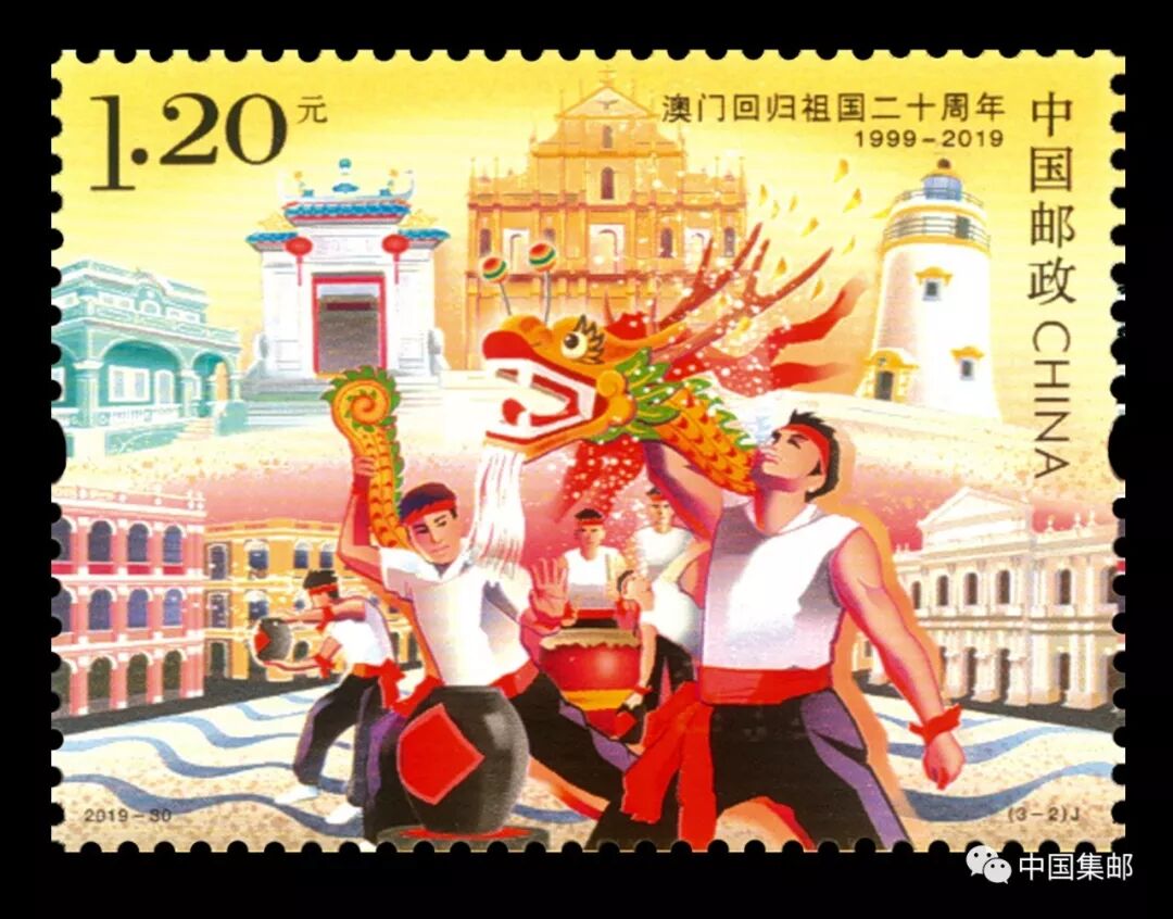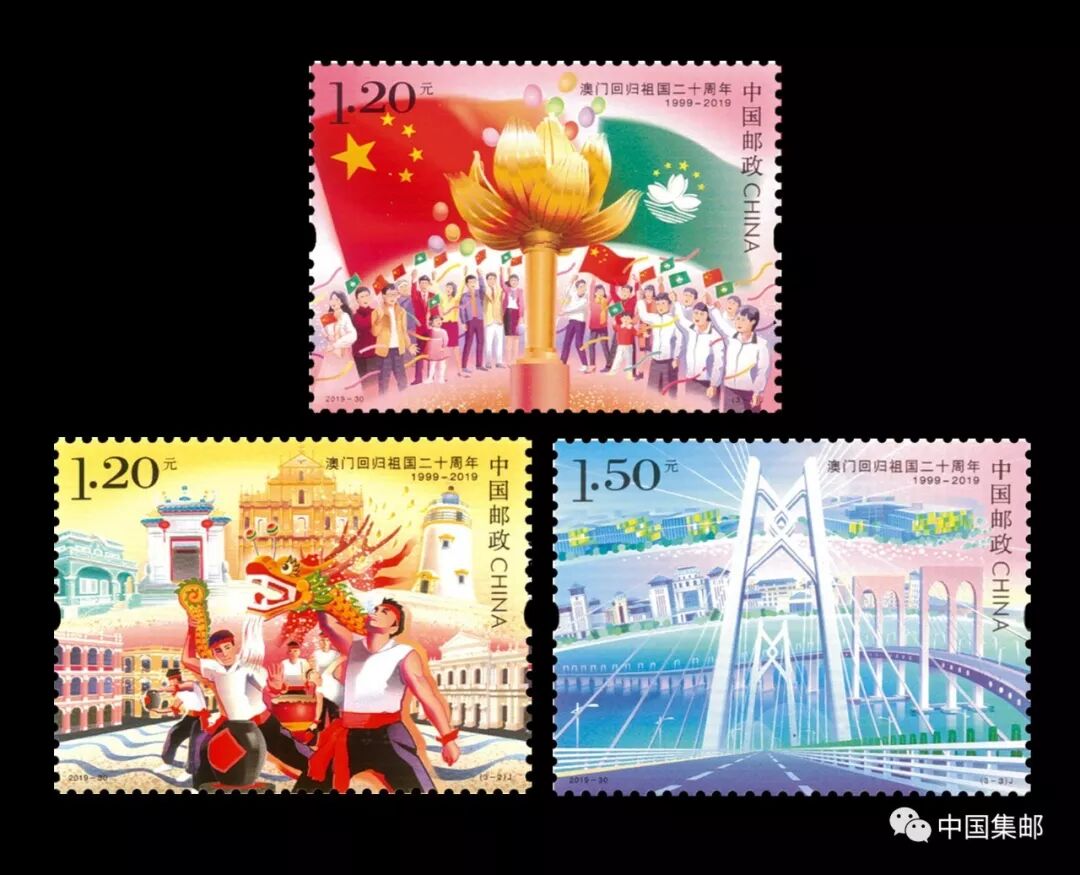 中国邮政定于2019年12月20日发行《澳门回归祖国二十周年》纪念邮票1套3枚。全套邮票面值为3.90元。